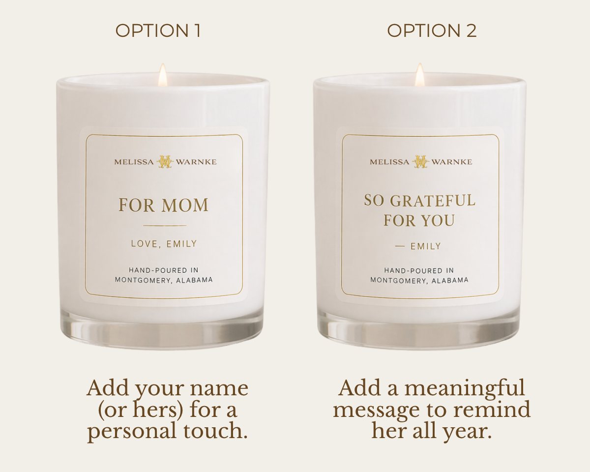 A custom candle, made to feel personal and entirely her own