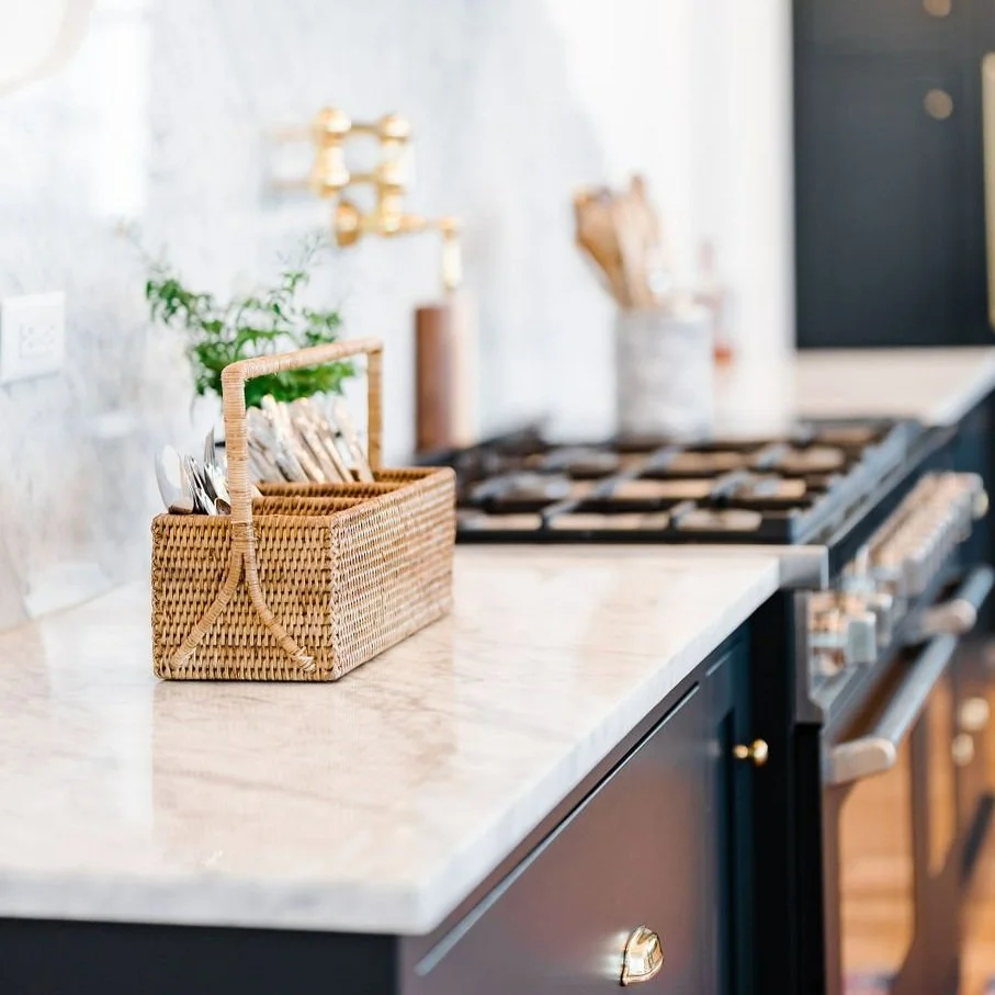 This handsome caddy is perfect for sharing serving utensils, napkins and flatware. Curved handles make it easy to pass around the table. Outside of the dining room, use it in the bathroom for makeup and skincare products, or use in the office to organize your pens and markers.